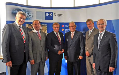 Bildzeile: Präsidium der IHK Siegen mit Minister Harry K. Voigtsberger (dritter von links).
