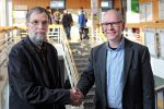 Mit großer Freude und ein wenig Anspannung fuhr der Teamleiter Jonas Klimke gemeinsam mit seiner Lehrerin Christina Pruß und Juliane Scheel, Vertreterin der Stadtsparkasse Hilchenbach, zur großen Siegerehrung nach Münster. Die Event-Location „Speicher 10“ bot den passenden Rahmen für die Ehrung der jungen Leute. Zu seinem Erfolg gratulierte dem Siegerländer Jürgen Wannhoff, Vizepräsident des Sparkassenverbandes Westfalen-Lippe zusammen mit Frank Busemann, ehemaliger deutscher Olympionike im Zehnkampf und Moderator der Veranstaltung. Jonas durfte sich über eine Urkunde und einen Gutschein freuen.