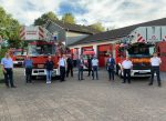 Heimische Industriegeschichte sichtbar gemacht, oder: „Vom Strom- zum Schaukasten“ – die Verantwortlichen mit drei von insgesamt fünf kunstvoll neu gestalteten Stromkästen an der Hagener Straße (von links: Martin Zielke – vertrat auch die Künstlerin Tzveta Grebe, die bei der Präsentation verhindert war, Günther Langer, Arno Dienenthal und Stadtrat Arne Fries).
