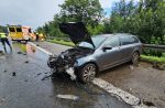 Kurz nachdem sie ihn aus den Augen verloren hatten konnte er im Straßenverlauf verunfallt und verlassen vorgefunden werden. Er war nach rechts von der Straße abgekommen und hatte ein Reklameschild beschädigt. Der zunächst flüchtige 18-jährige PKW-Fahrer könnte kurze Zeit später gefunden werden. Er war alkoholisiert. Ihm wurde eine Blutprobe entnommen.