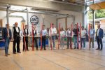 Das Bild zeigt die Finalistinnen v.l.n.r: Charlotte Weihl (Pfalz), Julia Lambrich (Mittelrhein), Katharina Gräff (Nahe), Marie-Sophie Schwarz (Mosel) und Annalena Baum (Rheinhessen). Im Hintergrund der Moderator Holger Wienpahl, Ehrenmitglied im Siegerländer Weinkonvent.