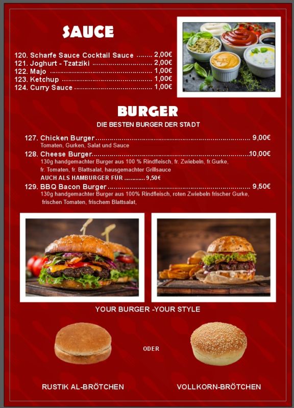 Ob im klassischen Fladenbrot, als Dürüm oder auf dem Teller mit Pommes, Reis oder Salat – das zart gewürzte Kalbs- oder Hähnchendönerfleisch wird mit frischen Zutaten und verschiedenen Saucen wie Tzatziki, Joghurtsauce oder Cocktailsauce serviert.