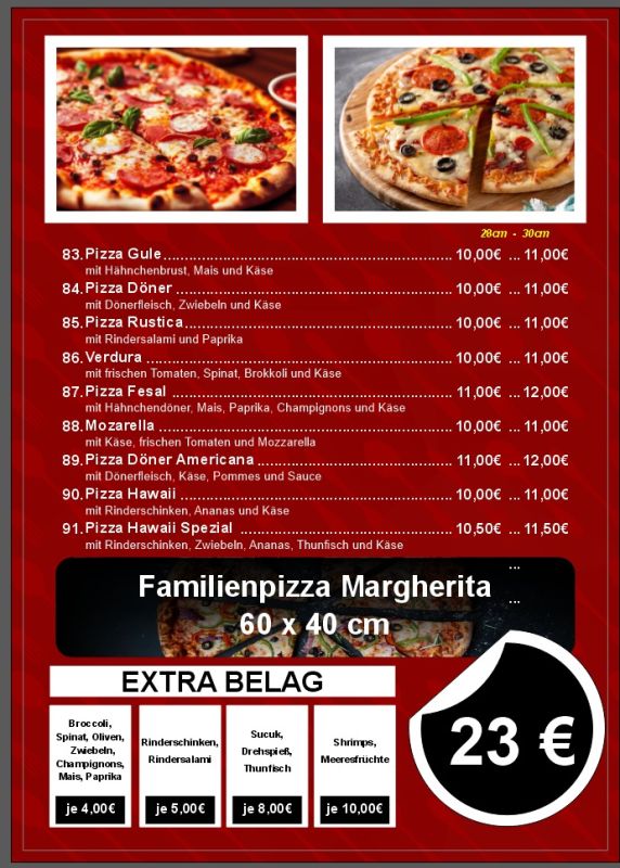 Auch Familienpizza im XXL-Format (60×40 cm) ist im Angebot!