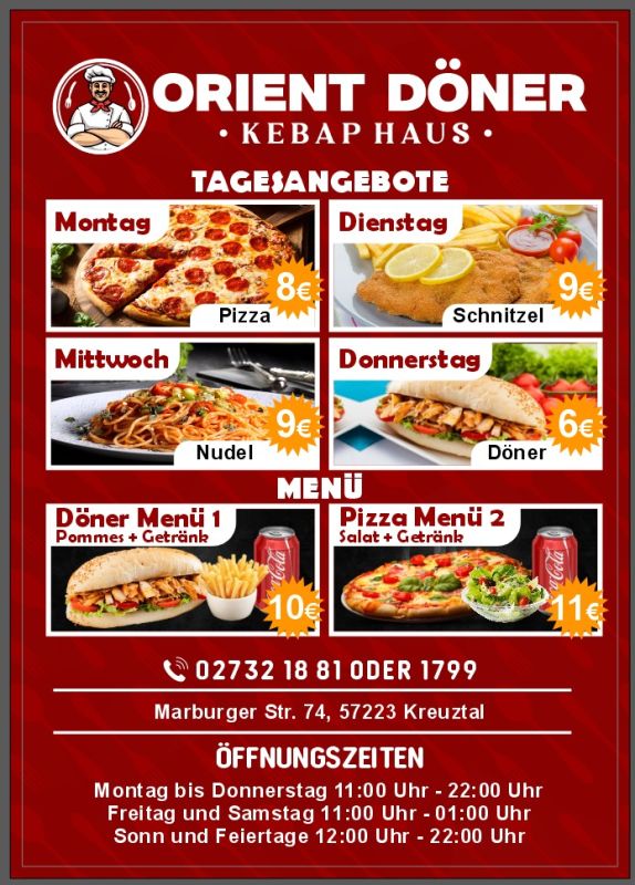 (wS/red) Kreuztal 24.06.2025 | Kreuztal bekommt kulinarischen Zuwachs: Am 27. Juni 2025 eröffnet das neue „Orient Döner – Kebap Haus“ an der Marburger Straße 74 seine Türen. Ein Muss für alle Liebhaber der orientalischen  Küche und frischer Spezialitäten!