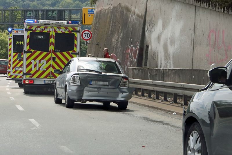 Gegen 14:55 Uhr musste ein 48-jähriger VW Touran-Fahrer in Höhe der sogenannten Ostrampe (Abfahrt Richtung Siegstraße) verkehrsbedingt abbremsen. Er war in Richtung Siegen auf der rechten Fahrspur unterwegs. Eine 20-jährige Astra-Fahrerin kam rechtzeitig hinter dem Touran zum Stehen. Ein hinter ihr befindlicher 47-jähriger Ford-Fahrer bemerkte die Situation zu spät. Er fuhr auf den Astra der 20-Järigen auf. Durch die Wucht der Kollision wurde der Astra nach vorne geschoben und fuhr gegen den Touran. Infolge der Kollision verletzten sich drei Insassen im Astra. Bei der Unfallaufnahme stellten die Beamten fest, dass die auf der Rücksitzbank sitzenden Kinder zwar angeschnallt waren, aber nicht in dem für sie noch vorgeschriebenen Kindersitz saßen. Dadurch saß der normale Sicherheitsgurt des Fahrzeuges nicht richtig. Letztlich führte der falsch sitzende Sicherheitsgurt zu Verletzungen bei den beiden Kindern. Außerdem verletzte sich noch ein 17-jähriger Jugendlicher, der auf dem Beifahrersitz saß.