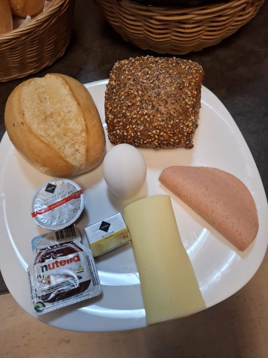 1 gek. Ei, 1 Scheibe Käse, Marmelade, Butter ………. je 1,00 €