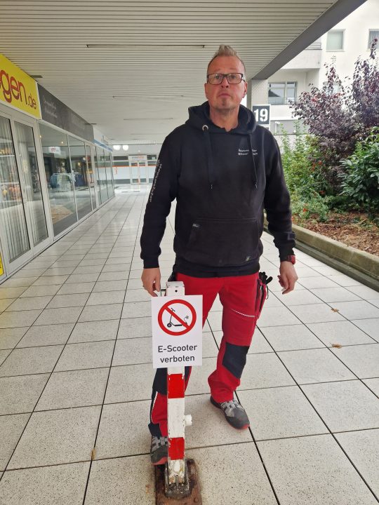 „Leider kam es immer wieder zu gefährlichen Situationen, weil Besucherinnen und Besucher mit E-Scootern oder anderen Fahrzeugen durch die Ladenpassagen gefahren sind“, erklärt Hausmeister und Sicherheitsverantwortlicher Oliver Brach. Trotz bereits vorhandener Hinweisschilder an den Eingängen habe ein Teil der Kundschaft die Regeln nicht beachtet. „Wir haben deshalb zusätzliche Schilder angebracht. Wer sich weiterhin nicht an das Verbot hält, muss künftig mit einer Anzeige rechnen“, so Brach weiter.