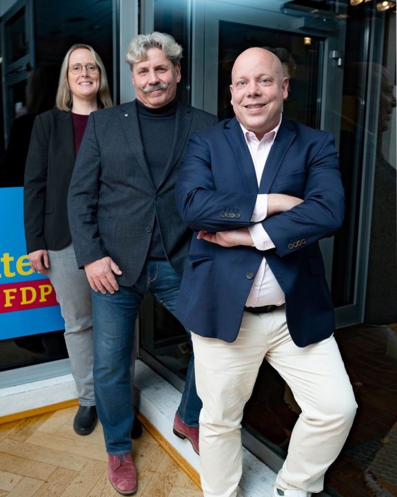 Die FDP-Fraktion im Kreistag hat sich konstituiert v. l.: Simone Neuser (Geschäftsführerin), Peter Hanke (stellvertretender Fraktionsvorsitzender) und Guido Müller (Fraktionsvorsitzender).