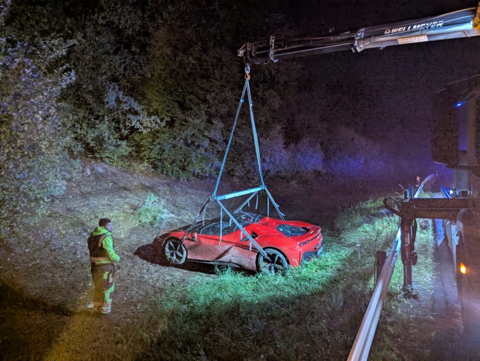 (wS/red) Wilnsdorf 05.10.2025 | Am Samstagabend kam es auf der Autobahn A45 in Richtung Frankfurt zu einem Unfall, der einen größeren Rettungseinsatz auslöste. Ein roter Ferrari geriet zwischen Wilnsdorf und der Anschlussstelle Haiger-Burbach gegen 19.40 Uhr außer Kontrolle und kam am Beginn einer Leitplanke von der Fahrbahn. Das Fahrzeug kam schließlich hinter der Schutzplanke zum Stillstand und wurde dabei erheblich beschädigt.