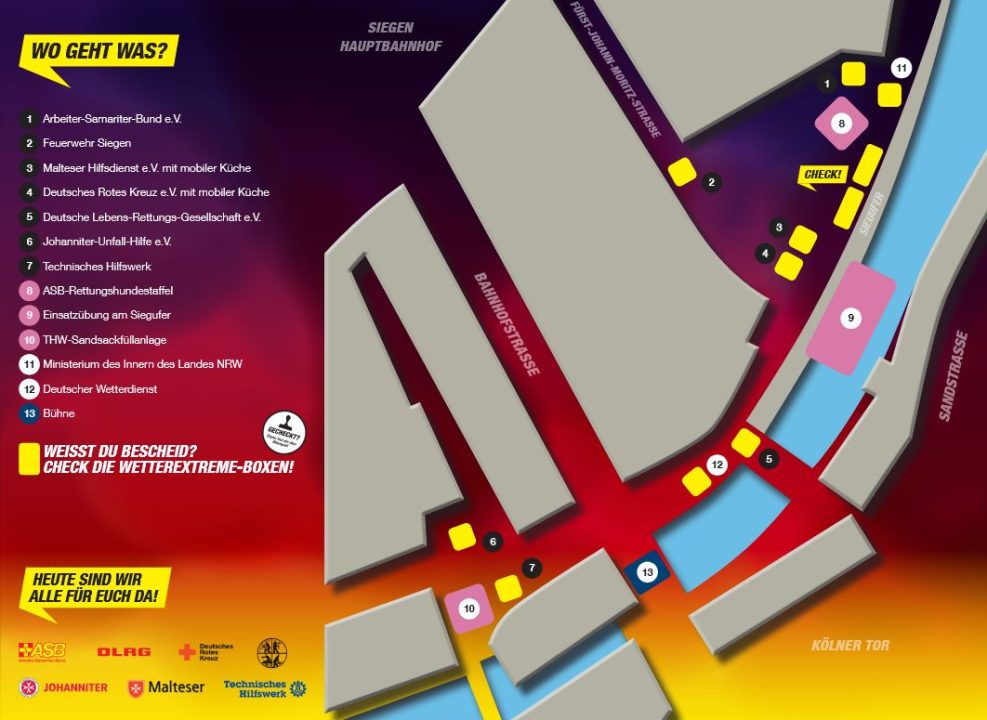 Der Katastrophenschutztag findet zentral am Siegufer in Siegen statt. Veranstaltet wird er vom Kreis Siegen-Wittgenstein und dem Innenministerium des Landes Nordrhein-Westfalen.