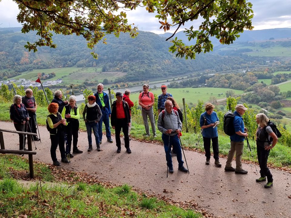 Montag führte die Wanderung entlang der Saar auf den Ayler Kupp, die weltberühmte Weinberglage oberhalb des Ortsteils Biebelhausen. Durch den Riesling-Weinort Ayl gelangten die aktiven Frauen und Männer zum Aussichtspunkt Saarburger Kreuz, von wo sie einen herrlichen Blick auf Saarburg genießen durften. Zurück nach Ockfen ging es vorbei an der Lambertuskapelle hoch über der Saar.