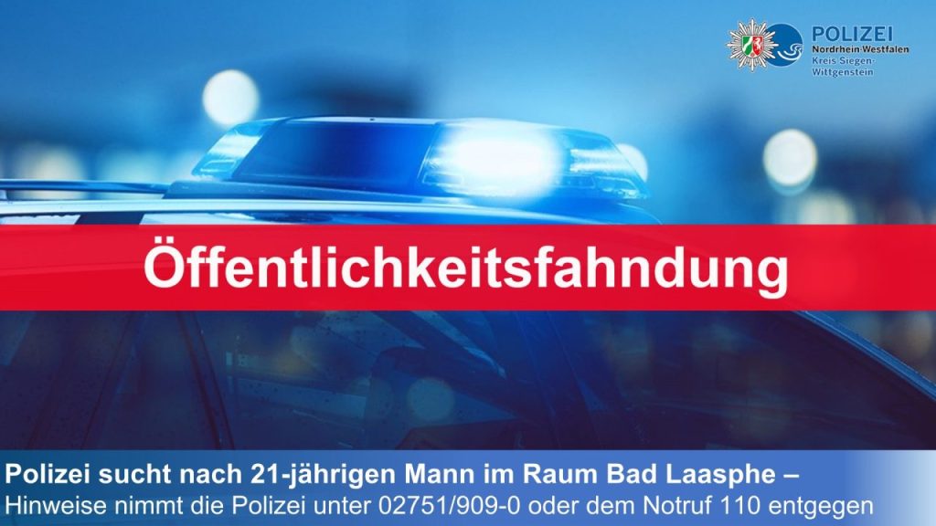 (wS/ots) Bad Laasphe 13.10.2025 | Der Vermisste verließ bereits am Samstag (11.10.) gegen 15:00 Uhr die Wohnanschrift. Die Vermisstenanzeige erfolgte dann am 12.10.. Der 21-Jährige ist nur bedingt orientierungsfähig.