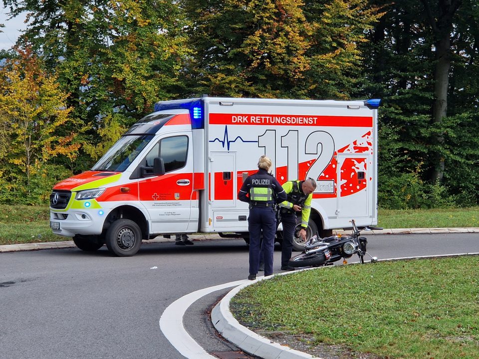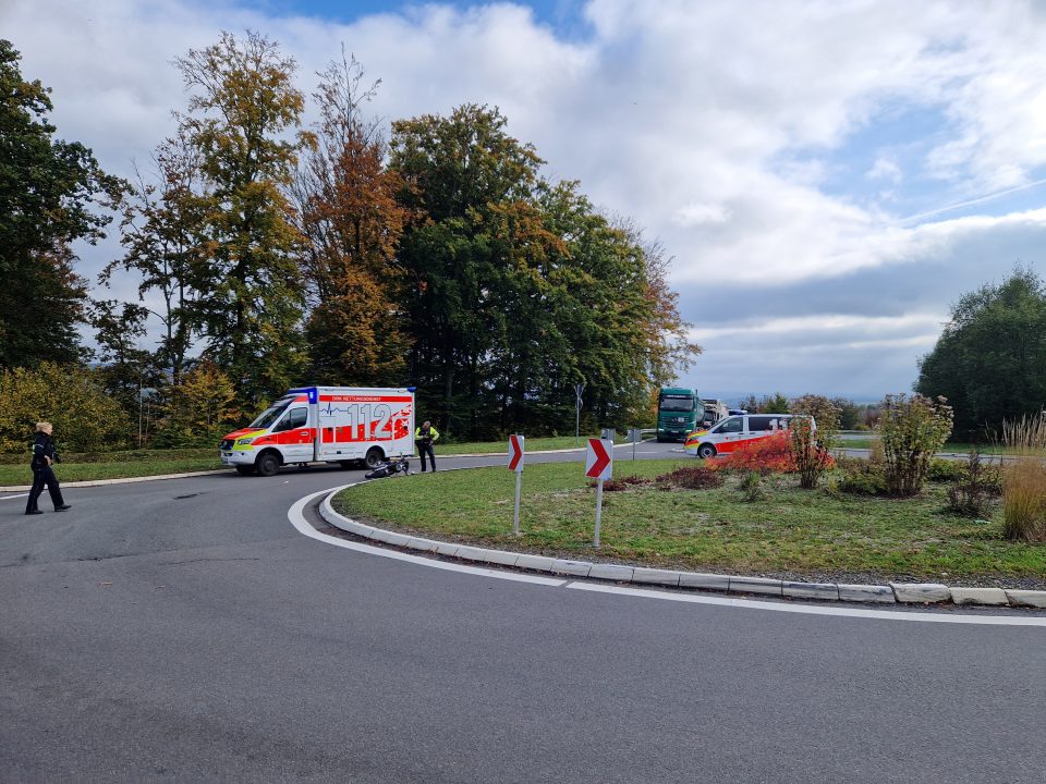 Zwischen beiden Fahrzeugen kam es zum Zusammenstoß, bei dem sich der Kradfahrer verletzte. Er wurde durch den Rettungsdienst in ein Krankenhaus gebracht. Für die Dauer der Unfallaufnahme war die Unfallstelle wegen auslaufender Betriebsstoffe komplett gesperrt.
