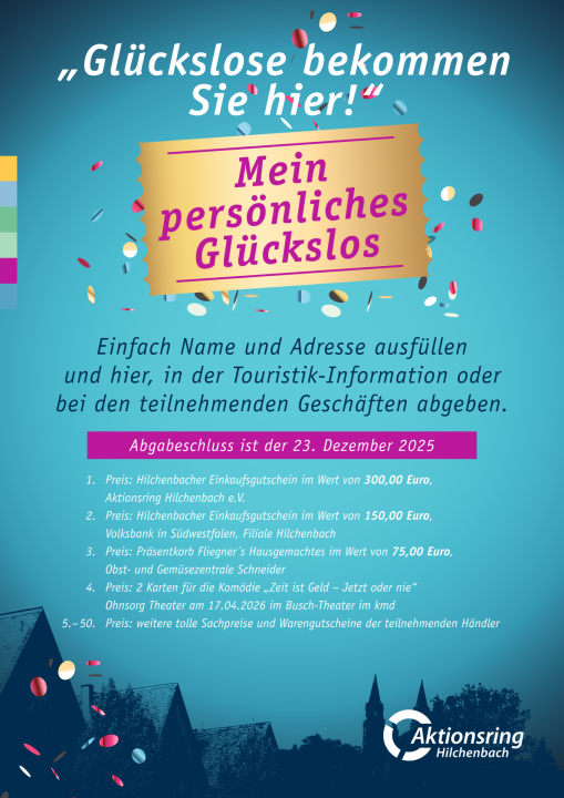25. November 2025(wS/hi) Hilchenbach 25.11.2025 | Es sind kleine blaue Kärtchen, die in der Vorweihnachtszeit im Hilchenbacher Stadtgebiet über die Ladentheke gereicht werden: die Glückslose....