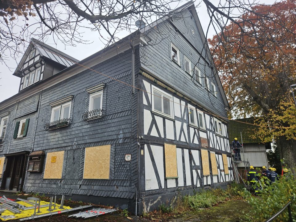 UPDATE: Einsturzgefahr am alten „Gasthof Hambloch“ – THW sichert Fachwerkhaus in Kreuztal-Krombach