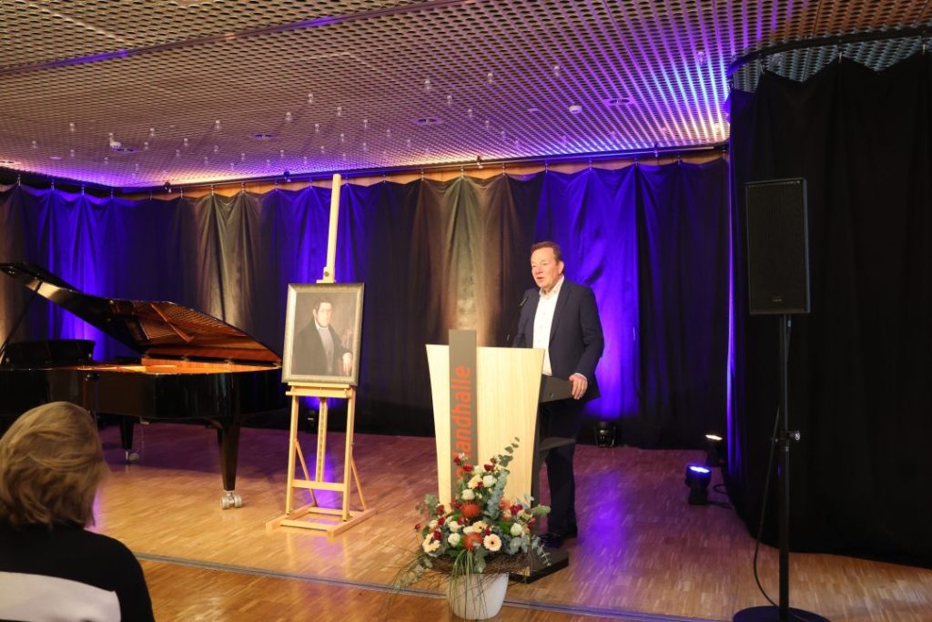 Bürgermeister Mues eröffnet die Feierstunde zum 150. Todestag von Leonhard Gläser.