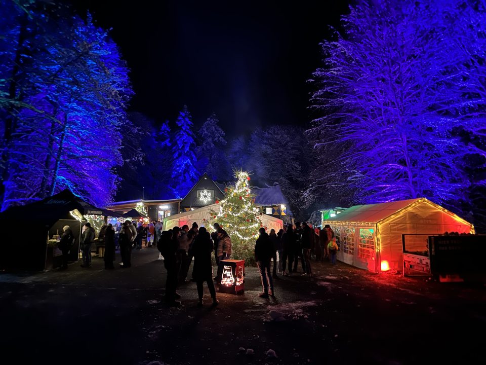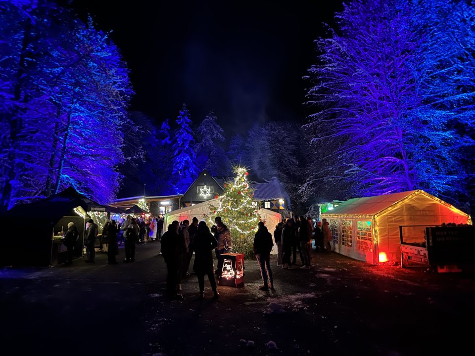Auch im Außenbereich kommt weihnachtliche Stimmung auf: Hier sorgen Lichterketten und Feuertonnen für Wärme und ein behagliches Ambiente. Für das leibliche Wohl ist bestens gesorgt – angeboten werden Gegrilltes vom Irlenhof, Pommes, Schupfnudeln mit Sauerkraut, lokale Bierspezialitäten, Haubergswaffeln, Glühwein, die beliebten Baumstriezel sowie weitere regionale Köstlichkeiten. Ein weihnachtlicher Duft zieht durch die Luft und lädt zum Verweilen ein.