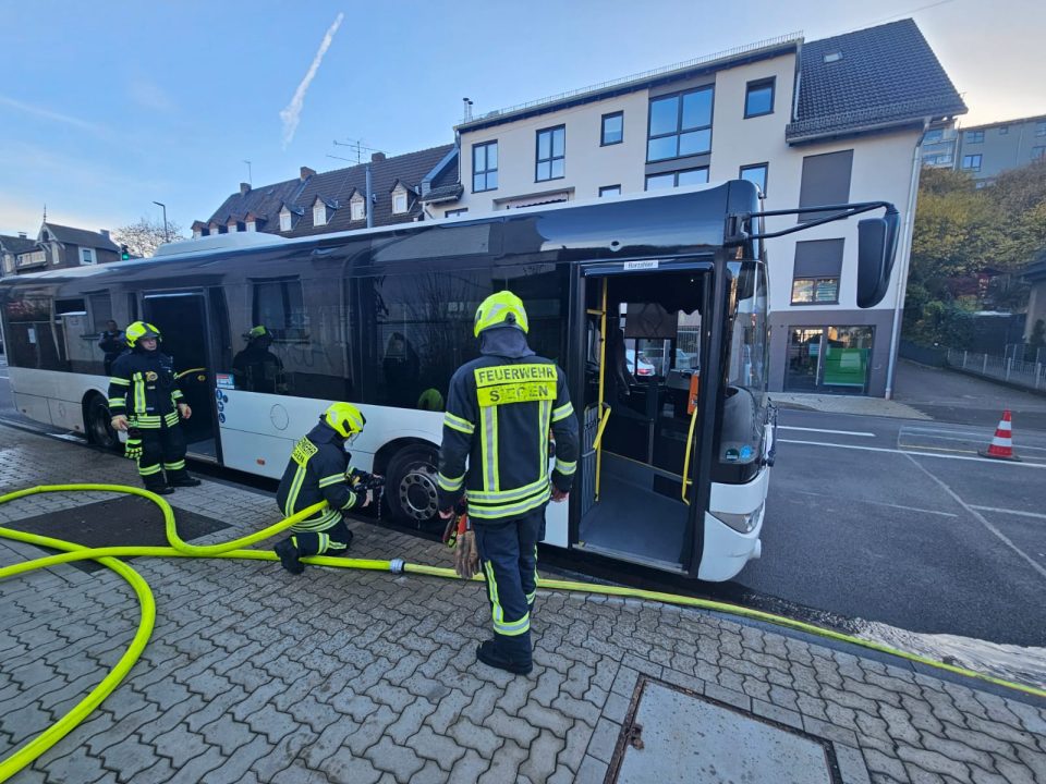 (wS/red) Siegen 07.11.2025 | Am Freitagnachmittag musste die Siegener Feuerwehr zu einem Einsatz in die Frankfurter Straße ausrücken. Gegen kurz nach 14 Uhr qualmte ein Linienbus, der vom Kreisel Schleifmühlchen in Richtung Siegen-City unterwegs war.