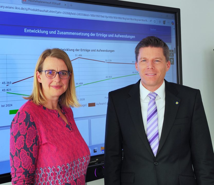 (wS/fr) Freudenberg 06.11.2025 | „Der Stadtrat möchte gestalten, um die Lebensqualität hoch zu halten, und nicht ständig die Finanzmisere von Kreis, Land und Bund ausbaden“, sagt Bürgermeisterin Nicole Reschke zur Vorstellung des Haushaltsplanentwurfs für 2026. Gemeinsam mit dem I. Beigeordneten und Stadtkämmerer Julian Lütz hatte sie die Aufgabe, ein Zahlenwerk vorzulegen, welches genehmigungsfähig ist, die Umsetzung der beschlossenen Projekte ermöglicht und nicht auf dem direkten Weg in die Haushaltssicherung führt. Reschke zeigt die Prioritäten auf: „Wir investieren weiter in Bildung, Sicherheit und Angebote für unsere Jugend.“