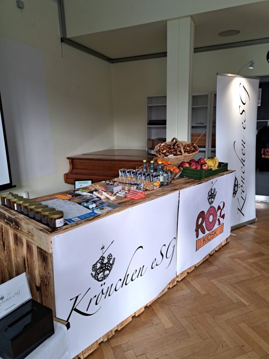 Die Krönchen eSG betreibt den schuleigenen Kiosk und verbindet nachhaltiges Wirtschaften mit gelebter Demokratie: Die Jugendlichen entscheiden selbst über Sortiment, Preise und Aktionen, entwickeln neue Angebote und übernehmen Verantwortung für Organisation, Hygiene und Finanzen. So wird der Kiosk zu einem Lernort, an dem ökonomisches Know-how, Teamarbeit und echte Mitbestimmung erfahrbar werden.