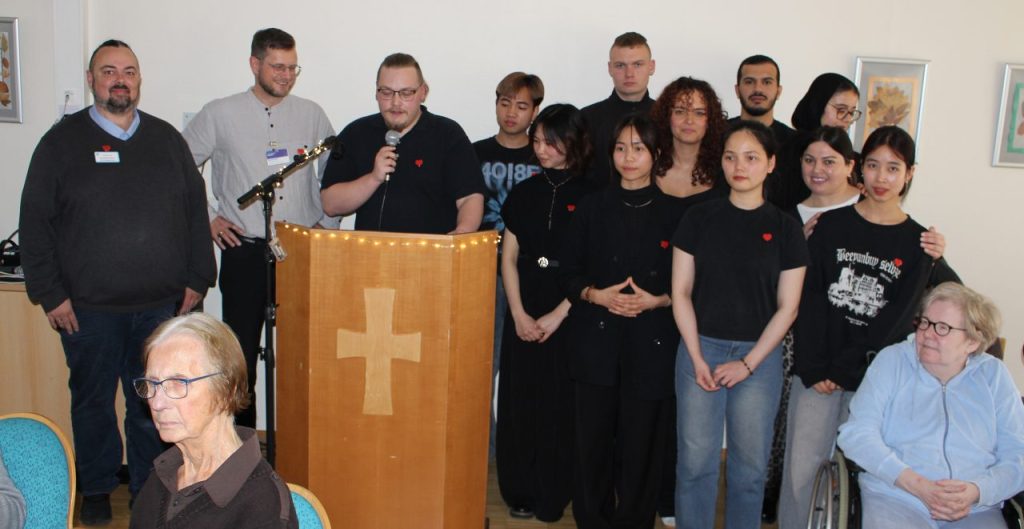 Begeistert waren auch die Bewohner. Für sie begann der Nachmittag mit einer Andacht der Pastorin Annegret Mayr, die den Heiligen St. Martin in den Fokus rückte. Lieder vom Licht und dem Herbst hatte der Chor der Bertha-von Suttner-Gesamtschule vorbereitet. Und nach dem Gesang wurde das Kuchenbüfett eröffnet. Dazu servierten die Auszubildenden – viele von ihnen kommen aus Vietnam – eine Spezialität aus ihrer Heimat. Den starken und sehr süßen Kaffee ließen sich viele der Bewohner schmecken.