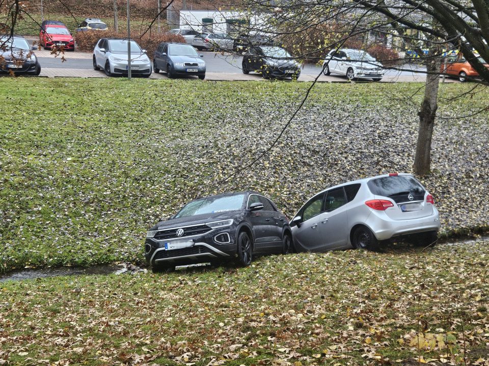 (wS/ots) Wilnsdorf 20.11.2025 | Bei einem Verkehrsunfall in Wilnsdorf sind am Mittwochmittag (19.11.2025) zwei Fahrzeuge in einem Bachlauf gelandet.