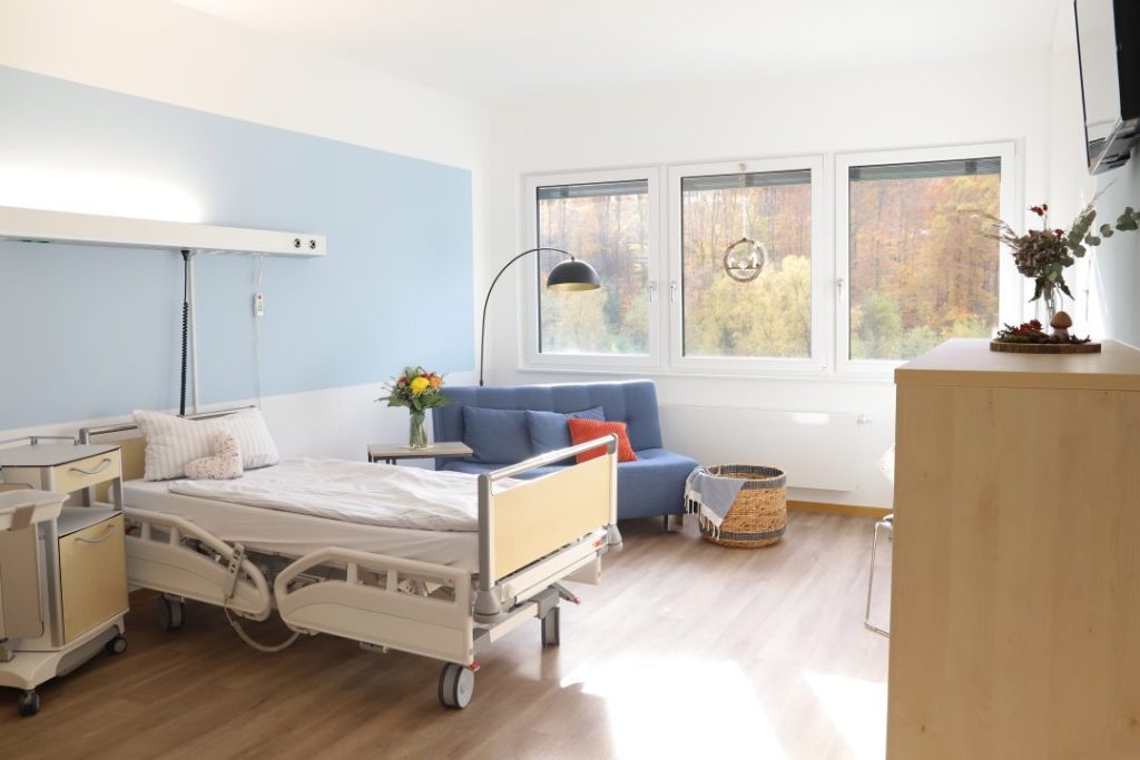„Unser Anspruch war von Beginn an, Menschen mit schweren Erkrankungen nicht nur medizinisch bestmöglich zu behandeln, sondern gemeinsam mit ihnen und ihren Angehörigen Lebensqualität zu gestalten“, sagt Dr. Julia Hartmann, Sektionsleiterin Palliativmedizin am „Stilling“. Die Station verfügt seit dem Umzug in den Neubau 2022 über acht moderne Einzelzimmer, helle, freundliche Gemeinschaftsräume und eine mit Pflegebett befahrbare Terrasse.