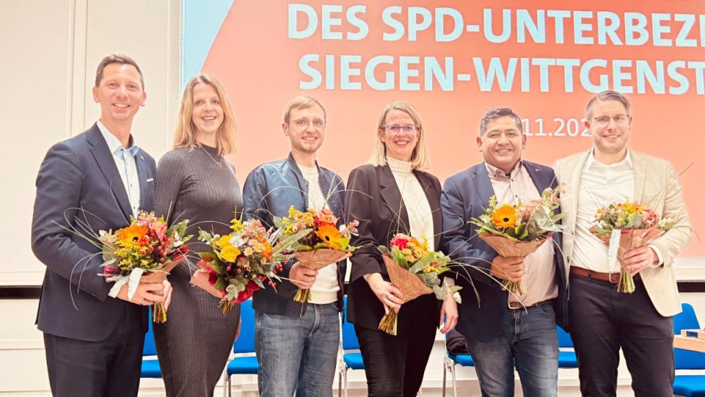 (wS/spd) Siegen 22.11.2025 | Der SPD-Unterbezirk Siegen-Wittgenstein hat auf seinem Parteitag am 13.11.2025 einen neuen Vorstand gewählt. Co-Vorsitzende bleiben Nicole Reschke aus Freudenberg und Bernardo Adhemar Molzberger aus Siegen. Zu stellvertretenden Vorsitzenden wurden Hendrik Fuchs aus Erndtebrück, Sabine Klein aus Wilnsdorf, sowie Michael Kolodzig aus Kreuztal gewählt. Schatzmeister bleibt Andreas Müller.