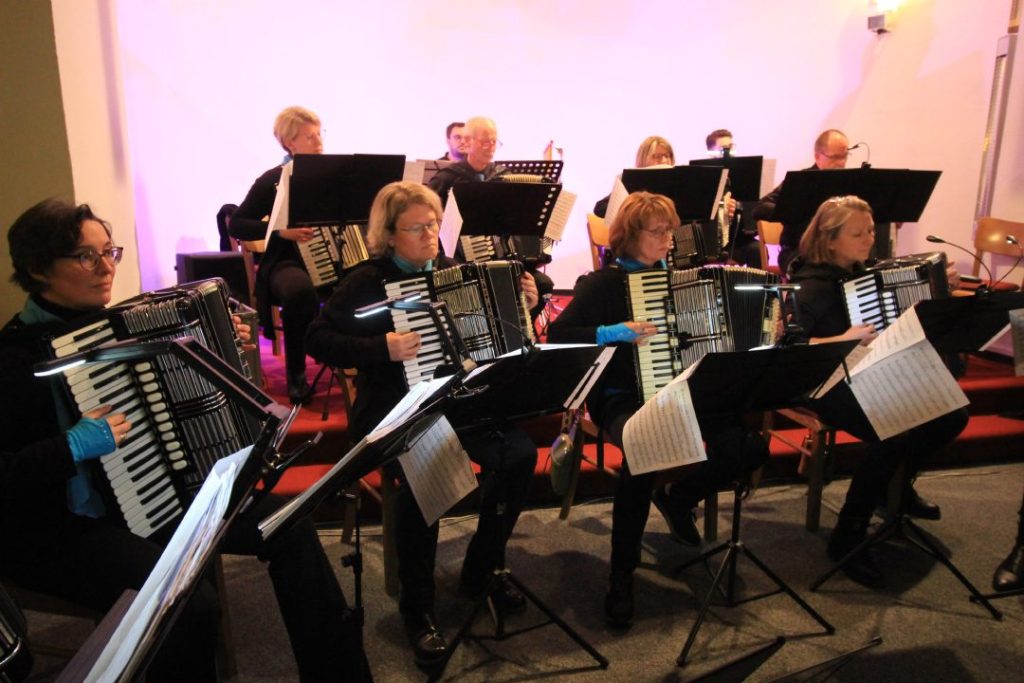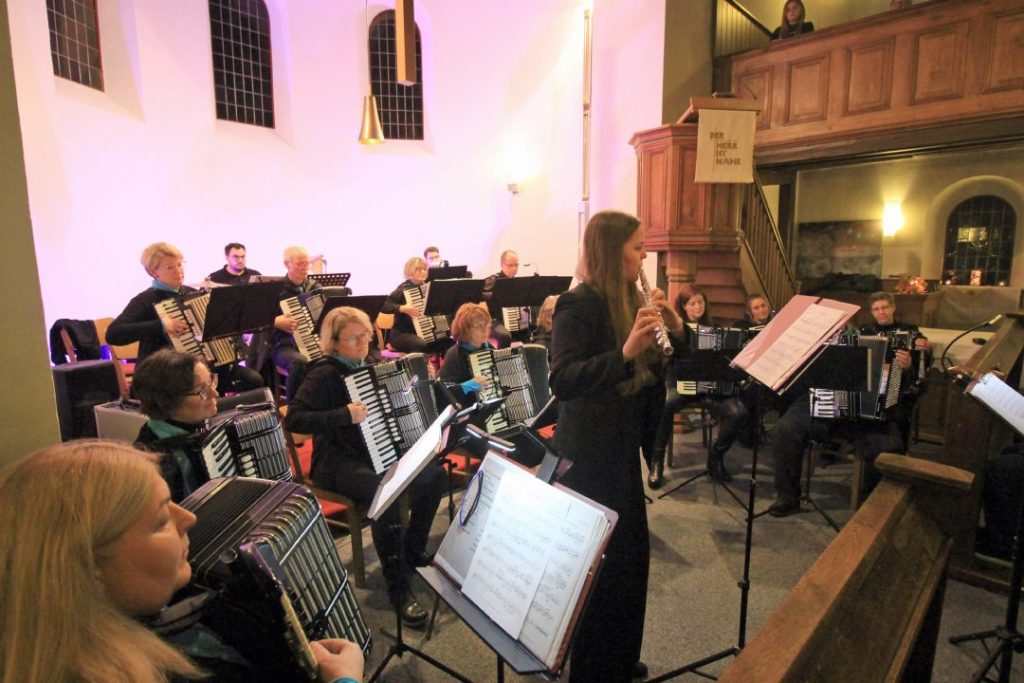Das Repertoire des renommierten Akkordeon-Orchesters, das nicht zu ersten Mal in dieser Kirche ein Konzert gab, war entsprechend an die Aussage und Stimmung dieses Tages angepasst. Vor Beginn des Konzertes hielt Michael Ermert, Ortsvorsteher von Banfe, eine nachdenklich und betroffen machende Laudatio zur weltpolitischen Situation. Man stehe kurz vor einem möglichen Verteidigungsfall; Bundeskanzler Friedrich Merz wolle Deutschland zur stärksten Armee Europas aufrüsten. Die Ukraine würde weiterhin von Deutschland unterstützt, ohnehin werde auch weltweit aufgerüstet. Der Bevölkerung sei anzuraten, sich darauf vorzubereiten, zwei Wochen lang selbst versorgen zu müssen, u. a. m. Nichts sei dann mehr so wie früher. Man hoffe aber, dass der Volkstrauertag weiterhin ein reiner Gedenktag bleibe und es nicht schlimmer komme.