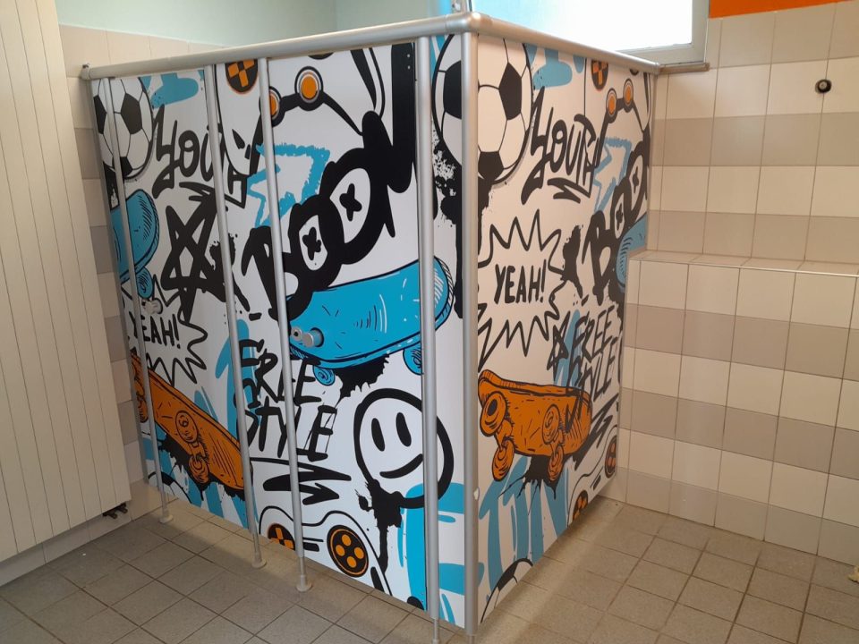 Instandsetzung der Sanitärtrennwänden, neuen WC-Deckeln und Urinalen sowie