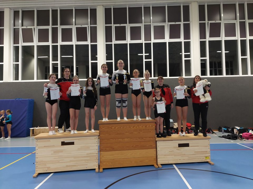 Die Gruppe Juti E war mit 28 Teilnehmerinnen die größte des Wettkampfs. Hier sicherte sich Mia Führes einen hervorragenden 2. Platz, während Hannah Pieck den 12. Platz belegte.