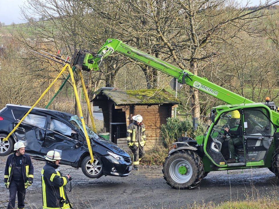 Der Fahrer des Pkw konnte von Einsatzkräften der Feuerwehr aus dem stark beschädigten Wagen befreit werden. Er wurde an den Rettungsdienst übergeben und anschließend mit einem Rettungswagen ins Krankenhaus gebracht. Ein Transport per Hubschrauber war nach ersten Angaben nicht erforderlich.