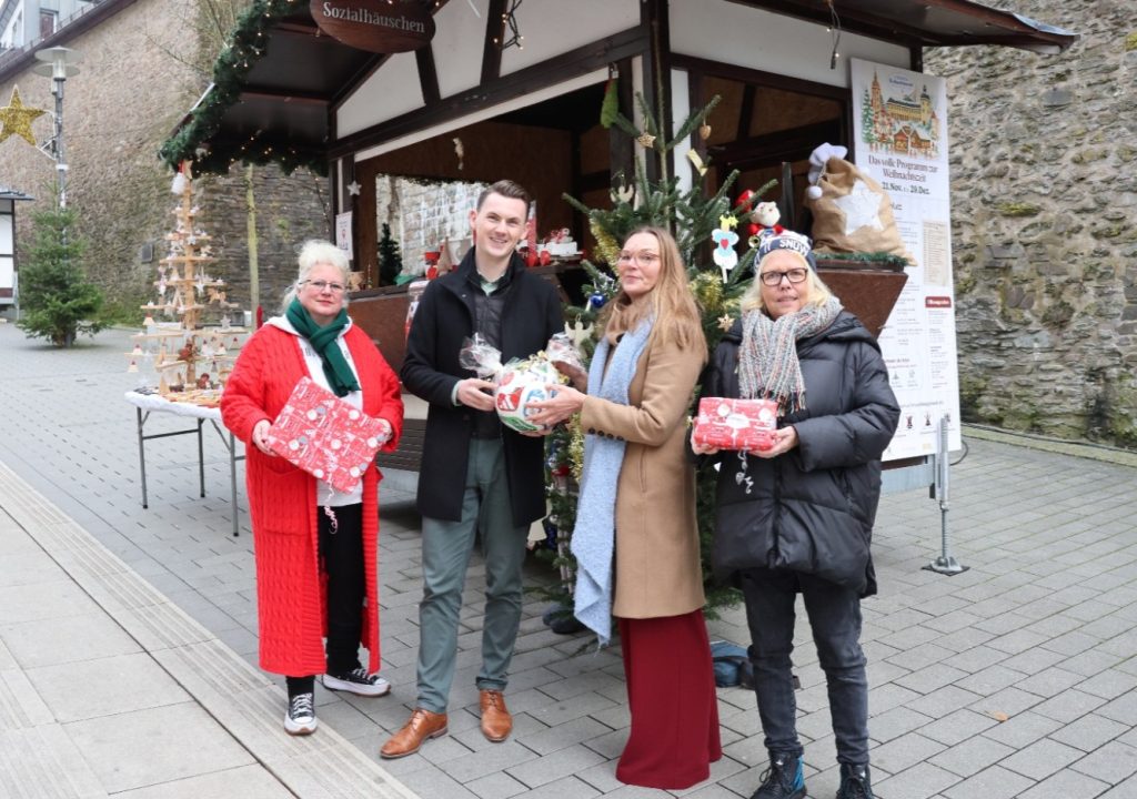 Tristan Vitt besuchte das AliBaba-Team der Aktion Herzklopfen auf dem Siegener Weihnachtsmarkt im Sozialhäuschen und konnte sich vor Ort einen Eindruck vom Engagement verschaffen: „Seit 19 Jahren unterstützt Ali Baba mit dieser Aktion Kinder, um ihnen an Weihnachten ein besonderes Geschenk machen zu können. Das ist eine echte Erfolgsbilanz für solch ein Herzensprojekt. Und die Kinder wissen: Es hat jemand an mich gedacht. Das als Schirmherr und Wunschpate auch weiterhin zu unterstützen, ist mir ein besonderes Anliegen.“