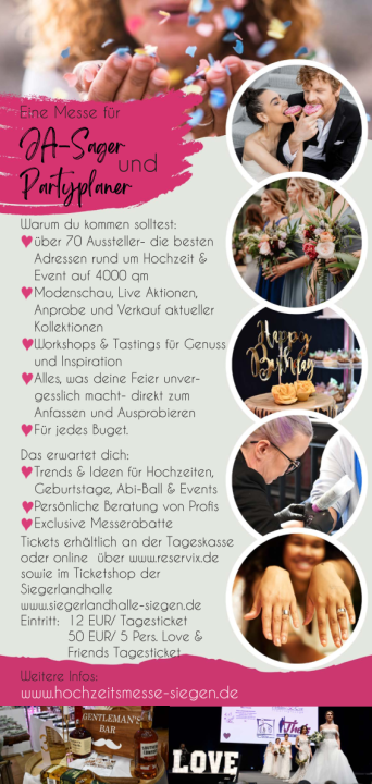 Weitere Infos: www.hochzeitsmesse-siegen.de