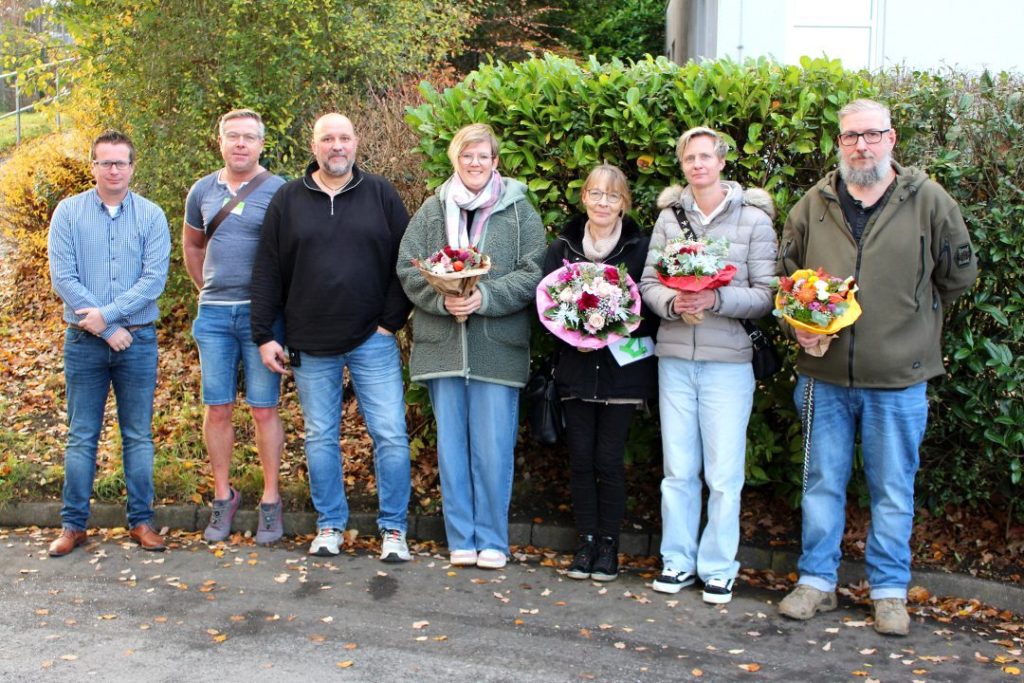 Mit Lob, Dank und Präsenten wurden sechs verdiente Mitarbeitende des Diakonie Klinikums an den beiden Standorten Siegen (Jung-Stilling) und Freudenberg (Bethesda) geehrt. Aus diesem Anlass hatten Verwaltungsdirektor Jan Meyer und Pflegedienstleiter Frank Grümbel zu einer Feierstunde eingeladen.