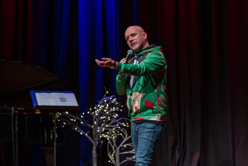 Die Weihnachtsshow ist zugleich ein Wiedersehen vieler heimischer Künstler. Dazu gehört auch der Bluessänger Joi Dreisbach, den Guido Fliege noch aus gemeinsamen Comedy- Zeiten der 1990er-Jahre kennt. Heute zählt Dreisbach zu den prägenden Stimmen der Region. Begleitet wurde er kongenial von Steve Hild am Flügel – musikalisch wie stimmlich fein abgestimmt. Die beiden verstehen sich blind auf der Bühne und haben eine große Fangemeinde.