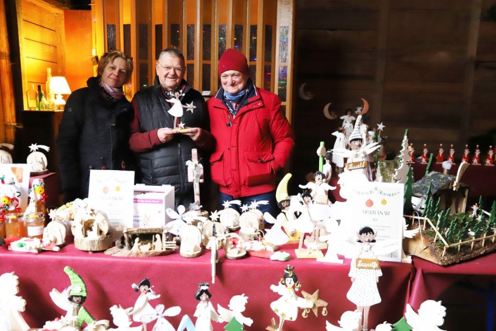 Handgemachtes aus Holz bot Hobbytüftler Franz-Josef Heer aus Kirchen (Mitte) gegen eine Spende für das Hospiz an. Beim Verkauf unterstützt wurde er von Palliativschwester Sonja Reise und dem Fördervereinsvorsitzenden Michael Lieber.