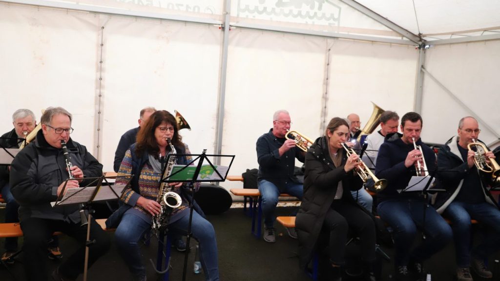 Die Valentins-Musiker Betzdorf-Bruche, unterstützt von Hospizleiterin Yasmin Brost am Saxophon und der Hospiz-Mitarbeitenden Verena Bläcker-Hoof an der Trompete, sorgten für weihnachtliche Klänge.