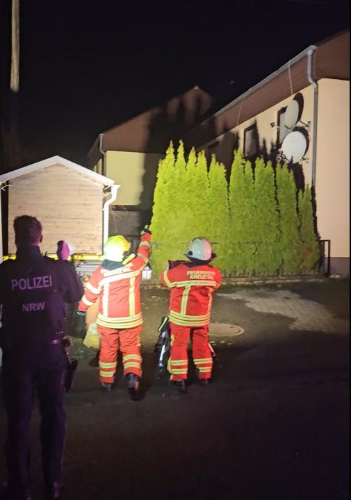 (wS/red) Kreuztal 02.12.2025 | Am Dienstagabend gegen 22.25 Uhr rückten die Feuerwehr Kreuztal und die Polizei zu einem Einsatz in der Dörrwiesenstraße aus. Das gemeldete Stichwort lautete „Stromleitung auf Haus“.