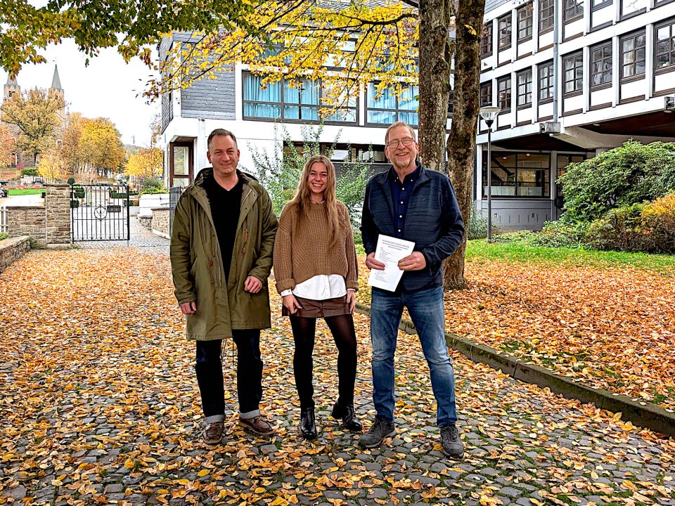 Roman Mengel vom KI, Verena Simonazzi vom Fachdienst Soziales und Integration sowie Jörg Heiner Stein, Fachdienstleiter Bürgerdienste, Sicherheit und Ordnung, (von links) stellen das gemeinsam erarbeitete Präventionskonzept vor. Foto: Stadt Hilchenbach