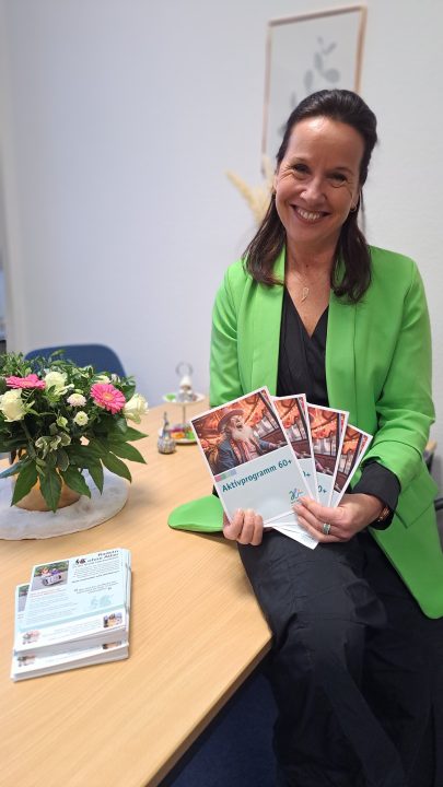 Die Seniorenbeauftragte Patricia Vanderlinden mit der neuen Broschüre „Aktivprogramm 60+“.