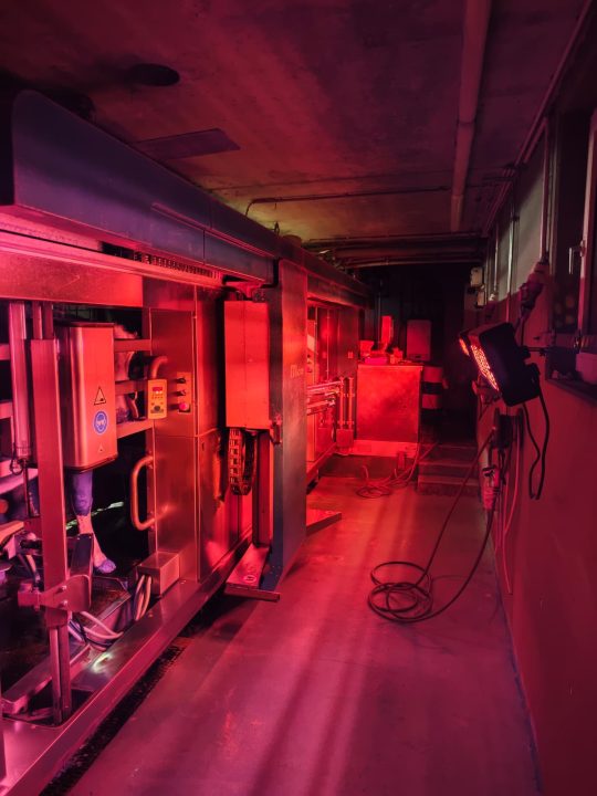 „Um die Tränken der Tiere frostfrei zu halten setzen wir auf eine Ringleitung mit einer Zirkulationspumpe bei der ab -5 Grad eine Heizung zu geschaltet wird. Der Melkroboter wird mit Infrarotheizstrahlern (s. Foto) frostfrei gehalten. Der Spaltenreinigungsroboter kommt bis -6 Grad zurecht. Sollte der Spaltenboden zu frieren, hilft nur noch schweres Gerät oder milderes Wetter. Die Rollos, im Fachjargon Courtains genannt, sowie Türen und Tore sind selbstverständlich vollständig geschlossen. Bei den aktuellen Temperaturen funktioniert alles einwandfrei.“