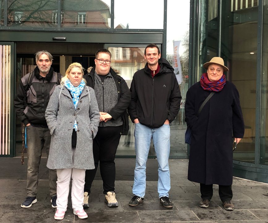 (wS/dia) Siegen 26.01.2026 | Das „Haus der Geschichte“ in Bonn war nun Ziel eines Ausflugs der Wohnungslosenhilfe der Diakonie Soziale Dienste. Der Zug brachte die Gruppe an den Rhein – und von der Haltestelle „Museumsmeile“ ging es per Rolltreppe direkt hinein ins „Haus der Geschichte“. Besichtigt wurde zum einen die Dauerausstellung, in der – beginnend mit dem Jahr 1945 bis zum Jahr 2023 – die zentralen gesellschaftlichen, politischen und wirtschaftlichen Entwicklungen der Bundesrepublik Deutschland thematisiert werden. Ein weiterer Schwerpunkt liegt auf der Entstehung und Weiterentwicklung des Grundgesetzes sowie dessen Bedeutung für das heutige alltägliche gesellschaftliche Zusammenleben. Zum anderen stieß auch die Sonderausstellung „Nach Hitler. Die deutsche Auseinandersetzung mit dem Nationalsozialismus“ auf großes Interesse.
