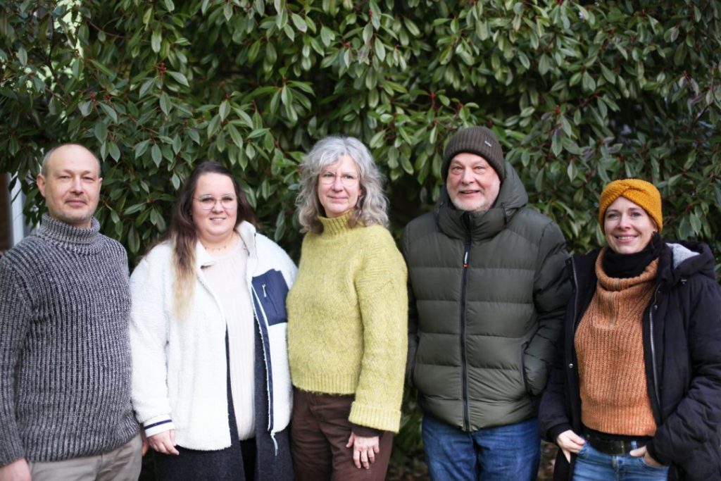 Gemeinsam stark gegen Wohnungslosigkeit – das EEZ-Team Siegen mit Alexander Rode (alf), Christin Schilling (Caritasverband Südwestfalen), von der Diakonie Soziale Dienste Stefanie Schneider und Johannes Schmidt, sowie Lisa Assing (alf)