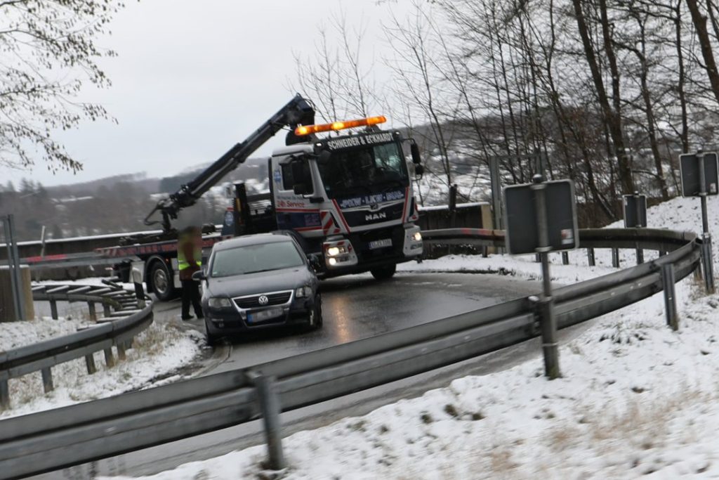 Es haben sich bereits witterungsbedingte Verkehrsunfälle ereignet. Unter anderem musste die HTS-Abfahrt Siegen-Weidenau in Richtung Weidenau, aus Fahrtrichtung Geisweid kommend, kurzzeitig gesperrt werden. Dort war ein Pkw auf der glatten Fahrbahn ins Rutschen geraten und in die Schutzplanken geprallt.