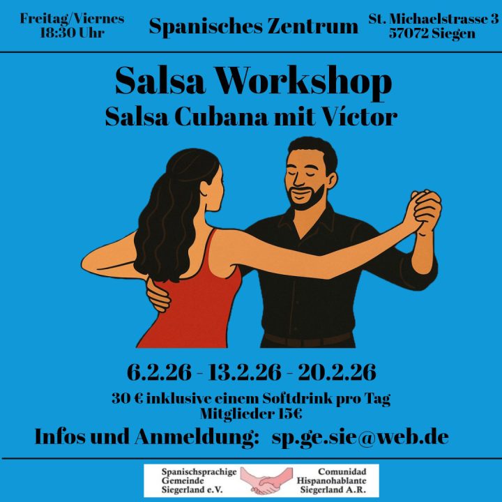 (wS/szs) Siegen 26.01.2026 | Das Spanische Zentrum Siegen lädt alle Tanz- und Salsa-Begeisterten herzlich zu einem besonderen Salsa-Workshop mit dem renommierten Tänzer Víctor Vargas ein.