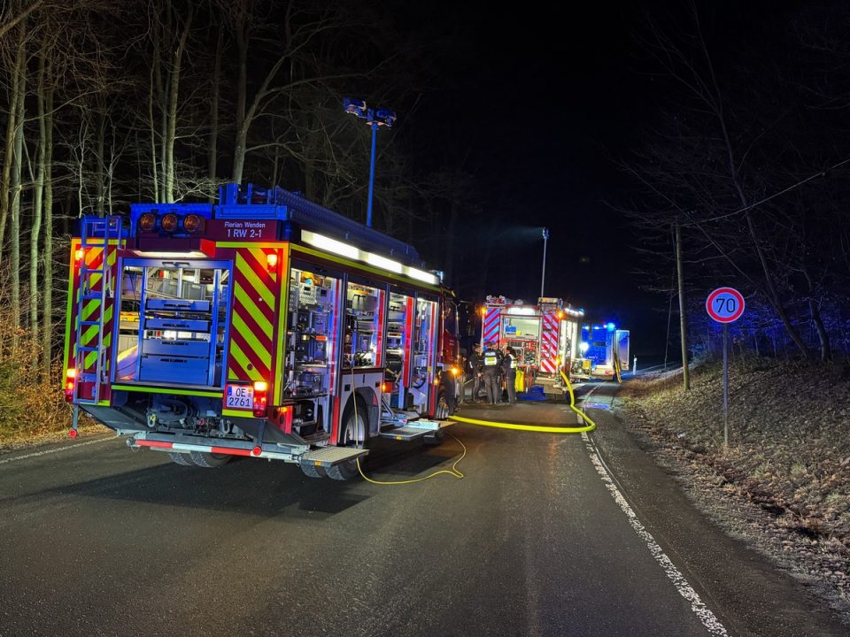 Nach der technischen Befreiung wurde der 42-Jährige medizinisch erstversorgt und zur weiteren Behandlung in ein Krankenhaus nach Siegen transportiert. Die Freiwillige Feuerwehr der Gemeinde Wenden war mit sechs Fahrzeugen und rund 30 Kräften vor Ort.