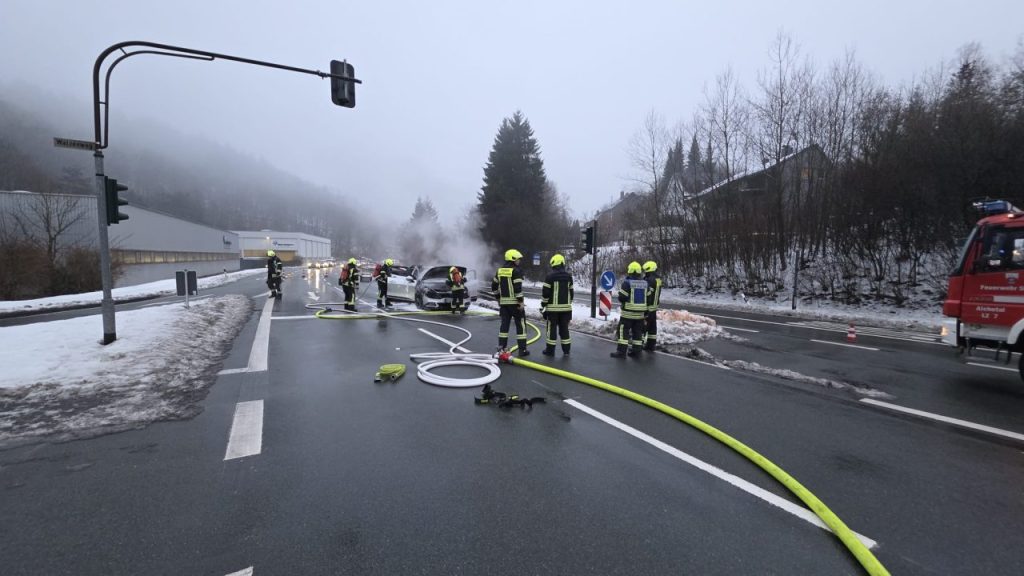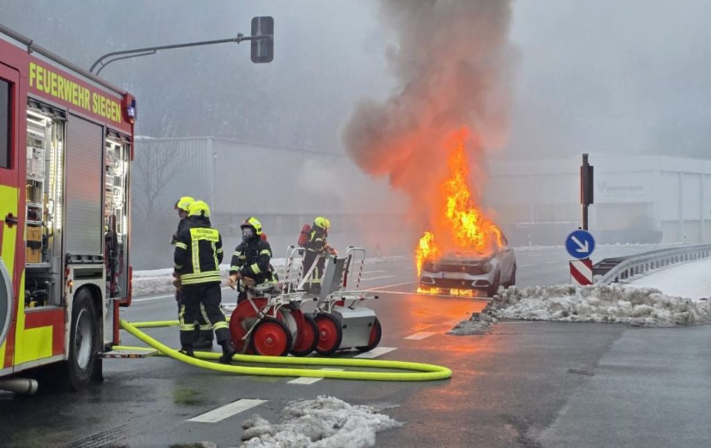 (wS/red) Siegen 13.01.2026 | Am Dienstagmorgen kam es auf der Freudenberger Straße in Höhe des Abzweigs Walzenweg zwischen Siegen-Numbach und Trupbach zu einem PKW-Brand. Die Feuerwehr wurde um 08:39 Uhr alarmiert, nachdem ein Fahrzeugbrand gemeldet worden war.