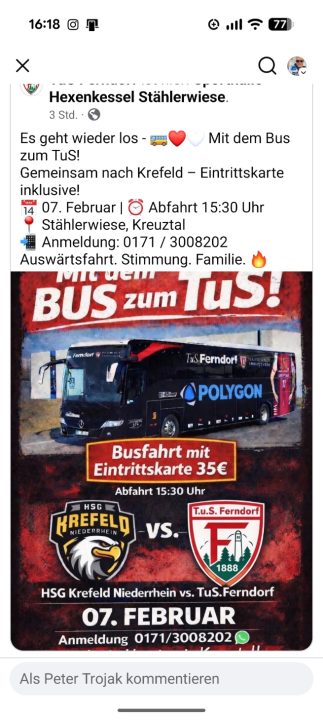 Übrigens, es fährt ein Fanbus nach Krefeld.