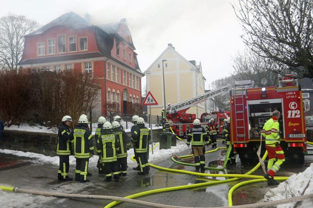 Die Löscharbeiten gestalteten sich aufwendig. Die Feuerwehr setzte zwei Drehleitern und mehrere Wasserwerfer ein. Um versteckte Glutnester zu erreichen, mussten im Dachbereich großflächig Schieferplatten abgetragen werden. Die Wasserversorgung erfolgte sowohl über Hydranten als auch über eine Entnahmestelle aus der nahegelegenen Lenne. Zur Unterstützung der Nachlöscharbeiten kam zudem eine Drohne der DLRG Welschen-Ennest mit Wärmebildtechnik zum Einsatz.